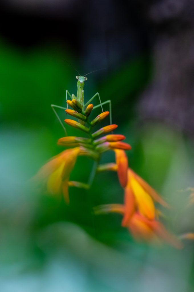 Ces veilleurs invisibles prennent d’abord la forme des mantes religieuses macrophotographiées par l’artiste japonais Yutaka Takahashi. Ces insectes tirent leur nom de cette posture de prière observée dans les champs par les paysans. Sous l’objectif du photographe, la mante apparaît comme une figure à la fois fragile et souveraine. Immobile, elle n’est ni menace, ni curiosité exotique : elle devient le centre silencieux de l’exposition, une présence tranquille, presque méditative.