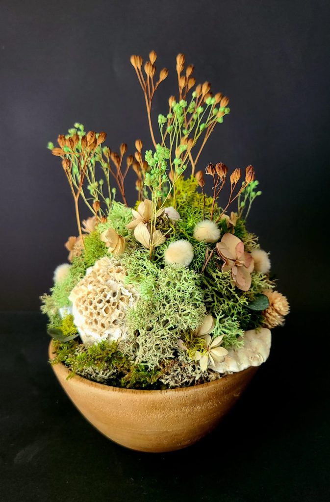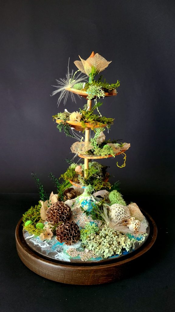 À travers ses créations, elle compose des espaces sensibles et immersifs, où la nature devient source d’imaginaire, de spiritualité et de réparation. Ses œuvres invitent à ralentir, à observer et à écouter le vivant, dans la conviction que la nature peut nous apprendre à nous reconnecter et à nous réparer.