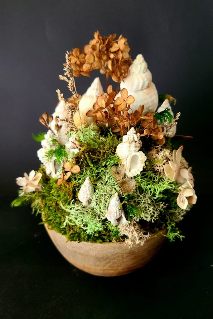 Artiste plasticienne française née en 1976 dans la Manche, Morgan Etes vit et travaille à Cherrueix, face à la baie du Mont-Saint-Michel. Son travail se développe à la croisée des techniques et des matières, mêlant éléments naturels, gestes intuitifs et expérimentations plastiques. Au fil du temps, l’univers végétal est devenu le cœur vivant de sa démarche.